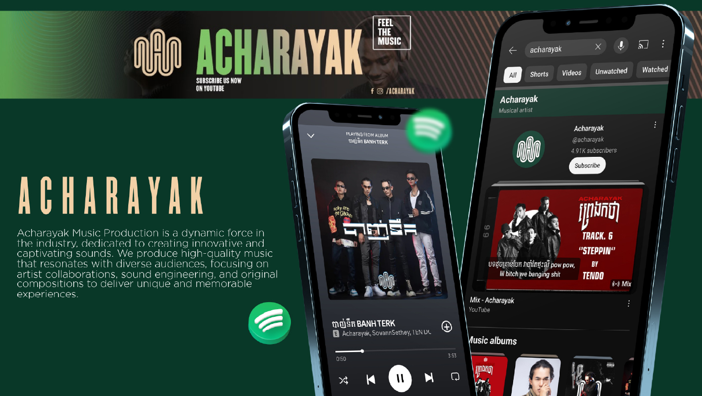 The Acharayak Music project aims to create a distinctive presence in Cambodia’s music industry, providing high-quality content that blends traditional and modern elements. Available on platforms like YouTube and Spotify, Acharayak seeks to amplify Cambodian culture globally and cater to a diverse audience.
